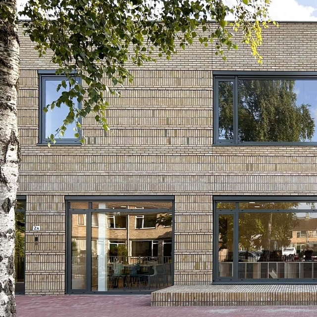 Een compact onderwijsgebouw met fraai gedetailleerde bakstenengevels die een geraffineerd lijnenspel vormen. Als schrijflijnen waar letters op komen… In september is het Kindcentrum De Noord in Ridderkerk feestelijk geopend.